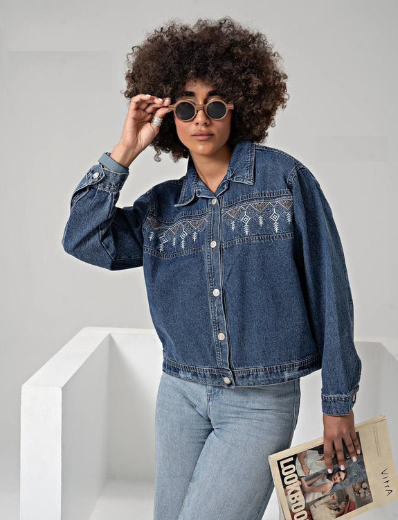 کت جین کراپ گلدوزی
